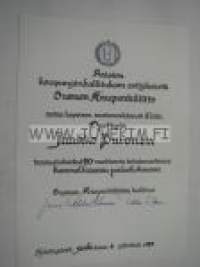 Oulun Villatehdas Oy - Uleåborgs Yllefabrik Ab, Oulu, 21.12.1918, 10 aktier nr 1541-1550 á Fmk 100, Herr A.K. Grotenfelt -osakekirja / share certificate