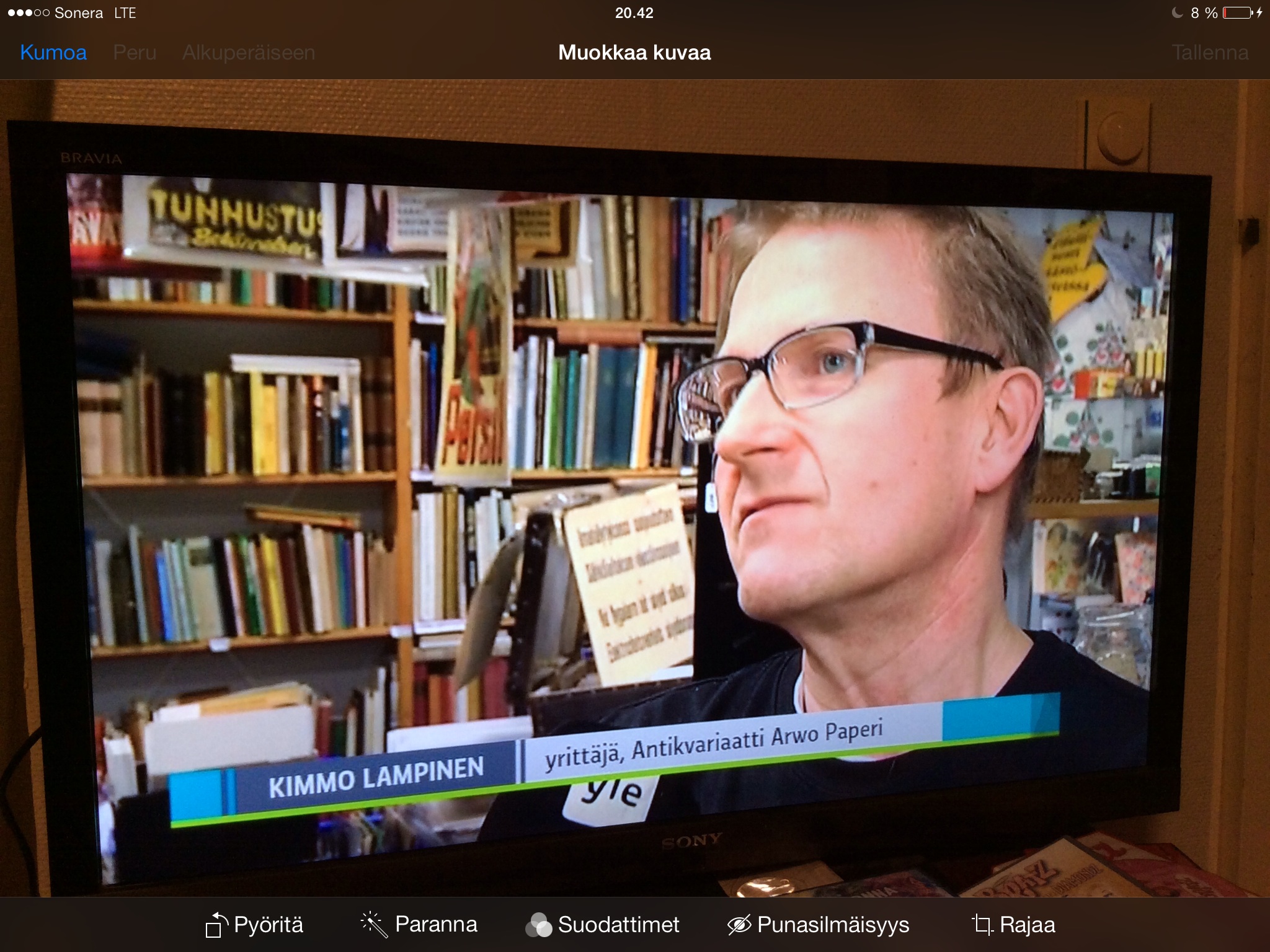 Kaikenlainen julkisuus on kuulemma hyväksi hokevat ainakin poliitikot. Toivottavasti itseni ja kollegani Vesa Hörkön esiintyminen ihan YLE:n TV-uutisissa tekee kansalle kansalle osaltaan selväksi, ettei antikvariaattiala mihinkään katoa, kirjoja ostetaan ja myydään käytettyinä(kin) niinkuin on jo satoja vuosia tehty.