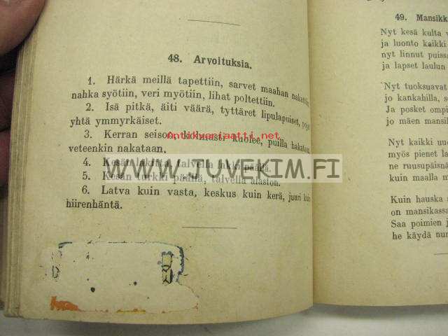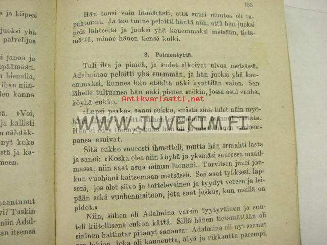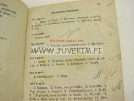 | Saatavilla | 1 kpl | | Julkaisuvuosi | 1921 | | Sivuja | 287 | | Painos | 9. | | Kunto | K2 | | Kulunut | | Sidonta/painoasu | Sidottu (kovak.) | | Kielet | Suomi |