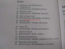 | Saatavilla | 1 kpl | | Julkaisuvuosi | 1992 | | Sivuja | 95 | | Painos | 2. | | Kunto | K4 | | Sidonta/painoasu | Kuvitettu kovakantinen | | ISBN | 951-20-4137-5 | | Kielet | Suomi |