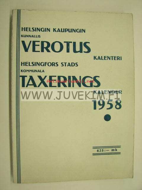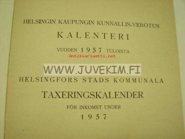 Helsingin kaupungin kunnallisverokalenteri 1958 vuoden 1957 tuloista