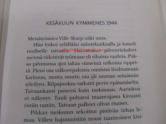 | Saatavilla | 1 kpl | | Julkaisuvuosi | 2001 | | Sivuja | 205 | | Painos | 1. | | Kunto | K4 | | Sidonta/painoasu | Sidottu (kansipaperit) | | ISBN | 951-1-17399-5 | | Kielet | Suomi |