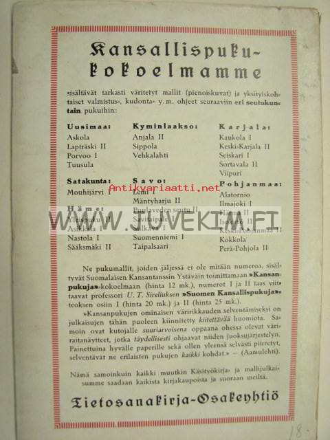 | Saatavilla | 1 kpl | | Julkaisuvuosi | 1923 | | Sivuja | 79 | | Painos | 1. | | Kunto | K3 | | Sidonta/painoasu | Nidottu (pehmeäk.) | | Kielet | Suomi |