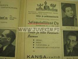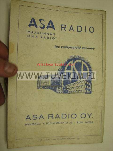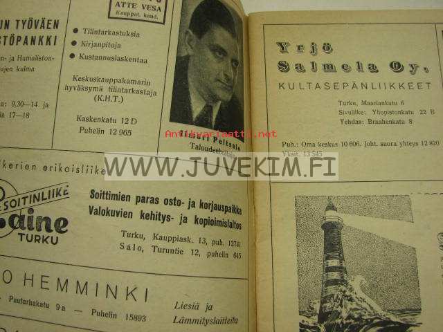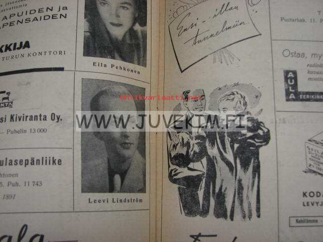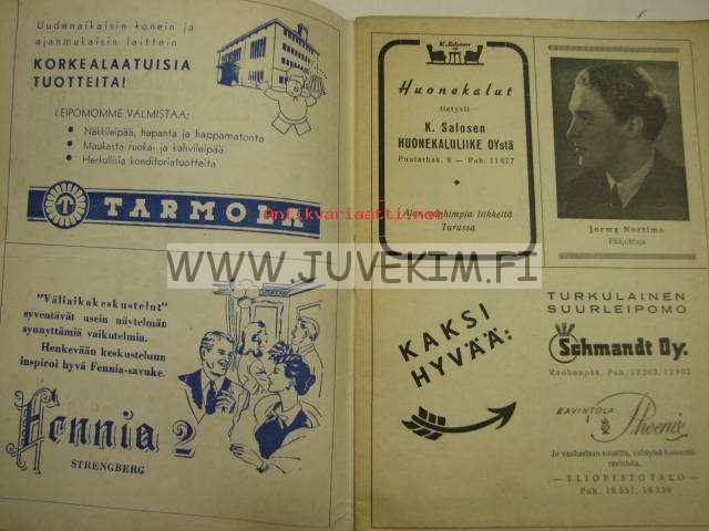 | Saatavilla | 1 kpl | | Julkaisuvuosi | 1948 | | Painos | 1. | | Kunto | K2 | | kansi epäsiisti | | Sidonta/painoasu | Vihko | | Kielet | Suomi |