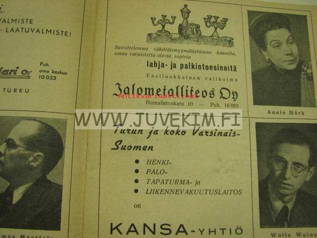 Turun kaupunginteatteri, 194815 x 21cm ohjelmavihko.