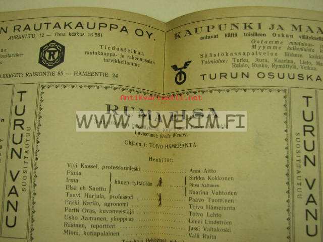 Turun kaupunginteatteri 1948-1949 "Ruma Elsa" -ohjelma