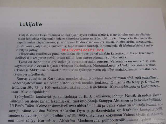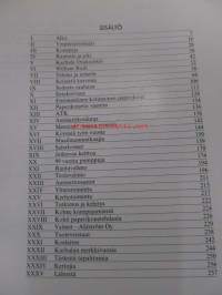 | Saatavilla | 1 kpl | | Julkaisuvuosi | 1990 | | Sivuja | 257 | | Painos | 1. | | Kunto | K4 | | Sidonta/painoasu | Sidottu (kansipaperit) | | ISBN | 952-90-1843-6 | | Kielet | Suomi |