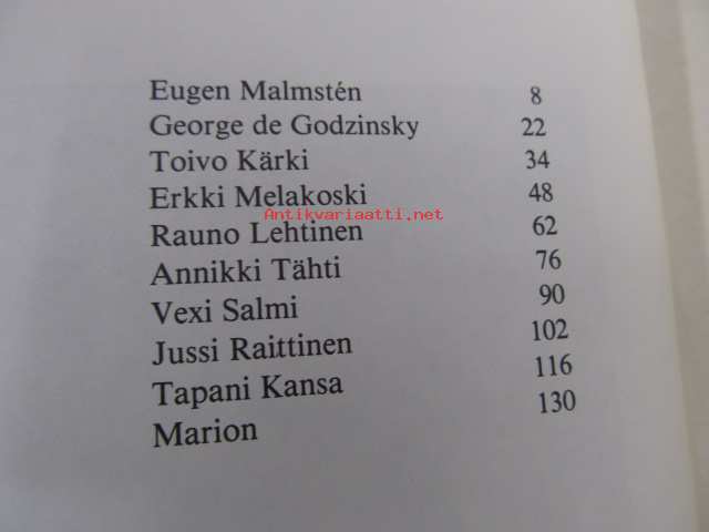 | Saatavilla | 1 kpl | | Julkaisuvuosi | 1979 | | Sivuja | 143 | | Painos | 1 | | Kunto | K3 | | Sidonta/painoasu | Kuvitettu kovakantinen | | ISBN | 951-30-4988-4 | | Kielet | Suomi |