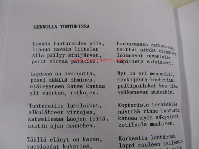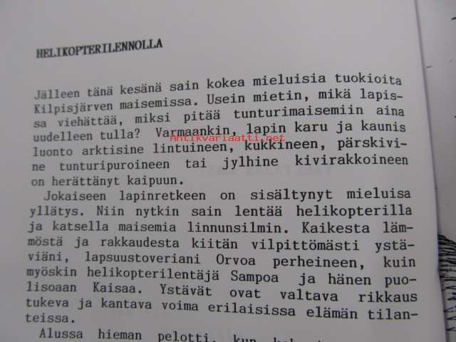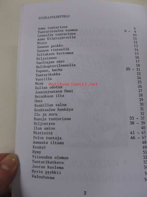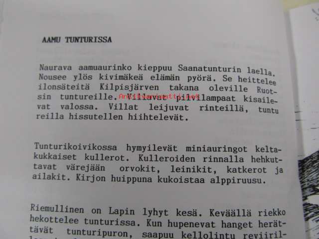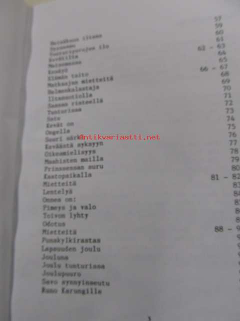 | Saatavilla | 1 kpl | | Julkaisuvuosi | 19? | | Sivuja | 99 | | Kunto | K3 | | Sidonta/painoasu | Nidottu (pehmeäk.) | | Kielet | Suomi |