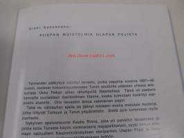 | Saatavilla | 1 kpl | | Julkaisuvuosi | 1980 | | Sivuja | 81 | | Painos | 1. | | Kunto | K3 | | Sidonta/painoasu | Nidottu (pehmeäk.) | | ISBN | 951-99259-6-1 | | Kielet | Suomi |