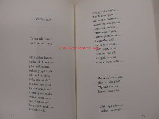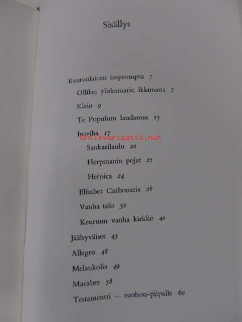 | Saatavilla | 1 kpl | | Julkaisuvuosi | 1962 | | Sivuja | 79 | | Painos | 1 | | Kunto | K3 | | Sidonta/painoasu | Sidottu (kansipaperit) | | Kielet | Suomi |