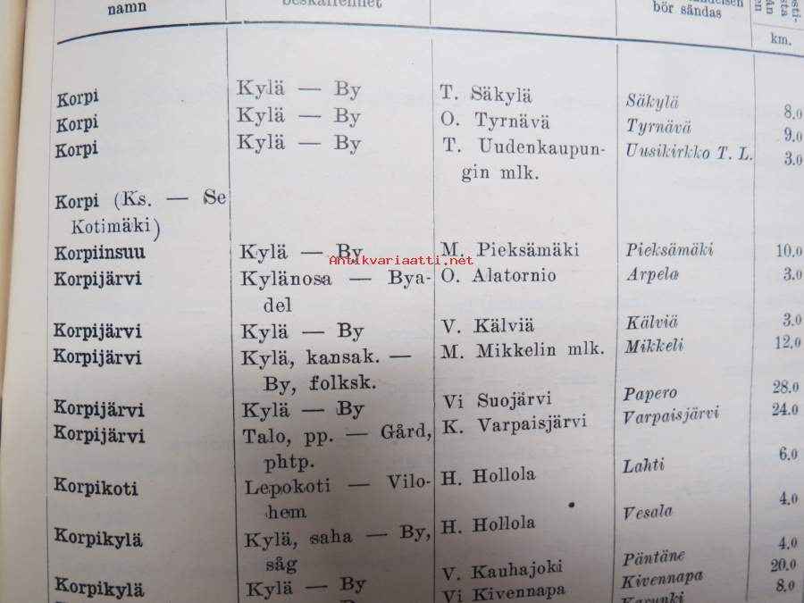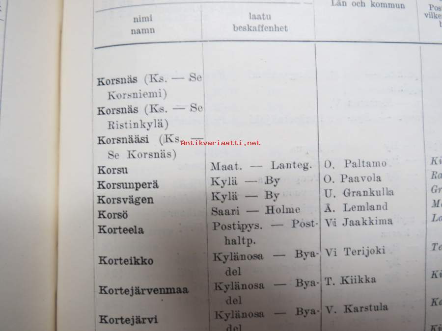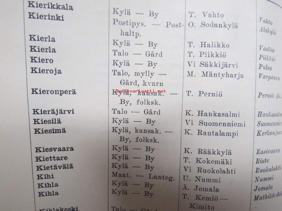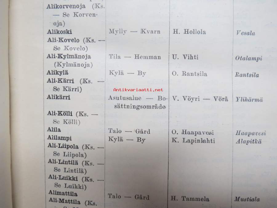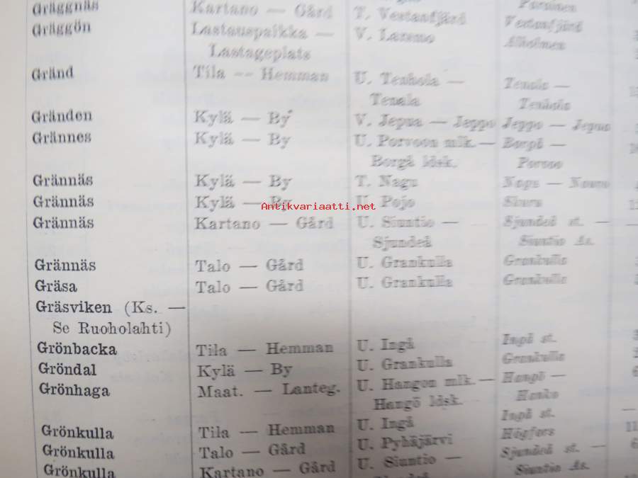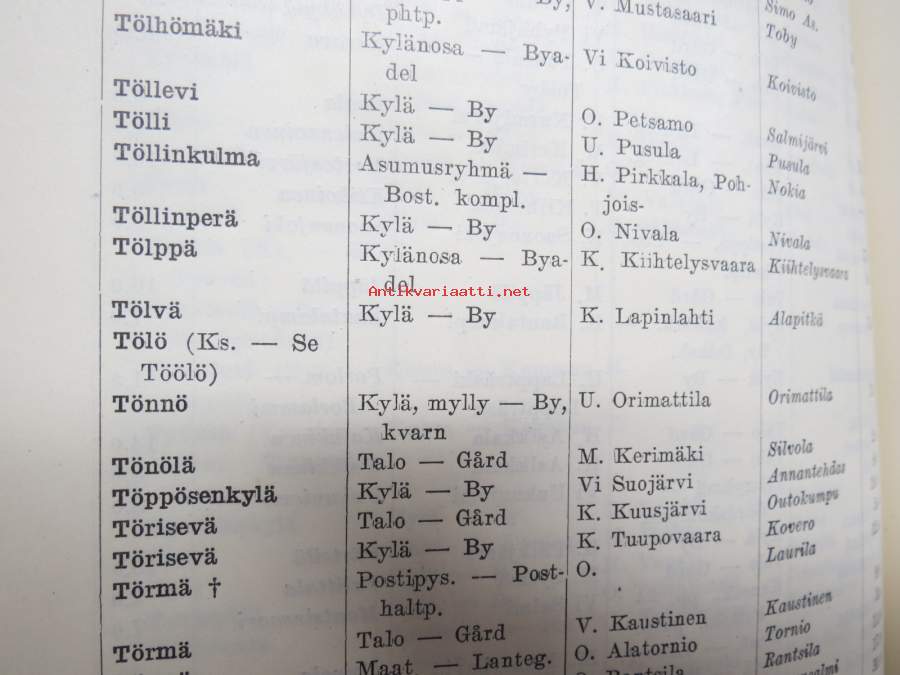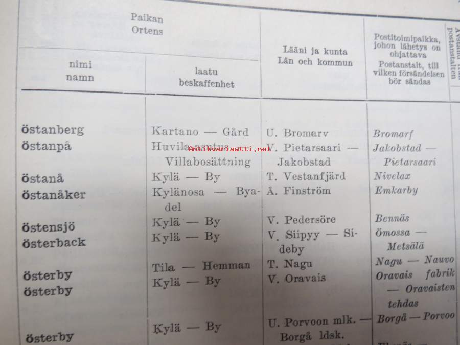 Posti- ja lennätinlaitoksen osoitehakemisto 1930 - Post- och telegrafverkets adressförteckning -erinomainen hakuteos paikkakuntien, kylien, talojen, tehtaiden jne.