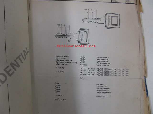 Volvo key codes, nyckelkoder -avainkoodikirja 1986