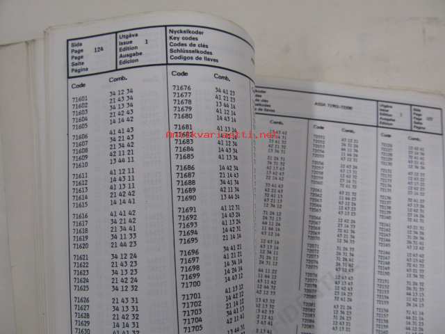 Volvo key codes, nyckelkoder -avainkoodikirja 1984