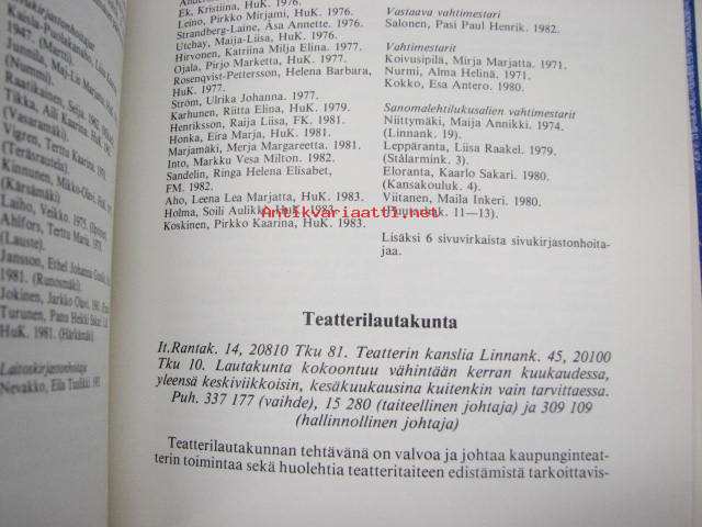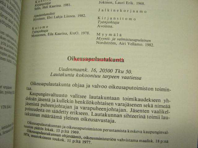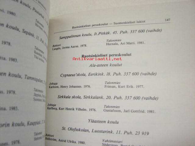 | Saatavilla | 1 kpl | | Julkaisuvuosi | 1984 | | Sivuja | 290 | | Painos | 1. | | Kunto | K3 | | Poistoleimat | | Sidonta/painoasu | Nidottu (pehmeäk.) | | ISBN | 0357-0878 | | Kielet | Suomi |