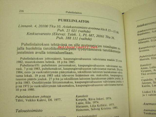 Turun kaupungin tilastotoimisto, 198515 x 21 cm kirja.