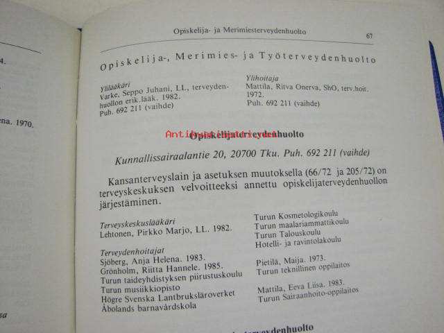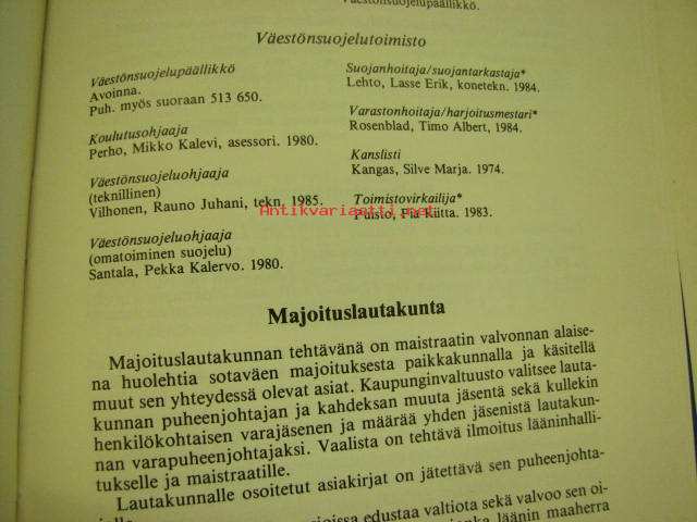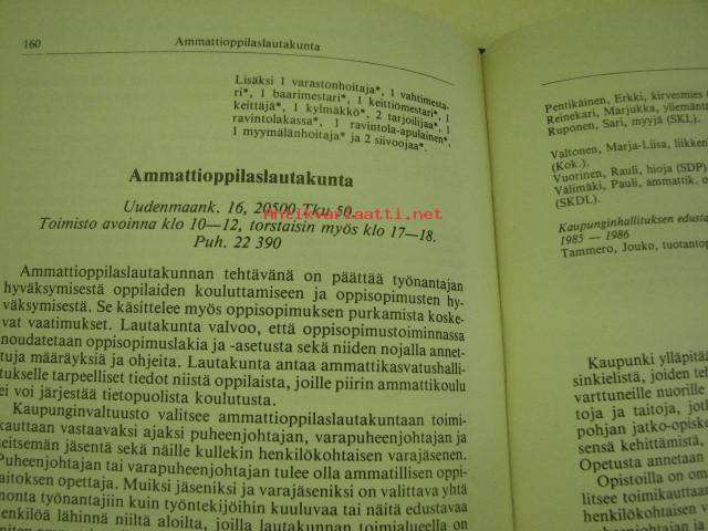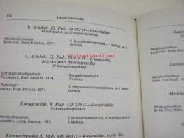 | Saatavilla | 1 kpl | | Julkaisuvuosi | 1985 | | Sivuja | 291 | | Painos | 1. | | Kunto | K3 | | Poistoleimat | | Sidonta/painoasu | Nidottu (pehmeäk.) | | ISBN | 0357-0878 | | Kielet | Suomi |