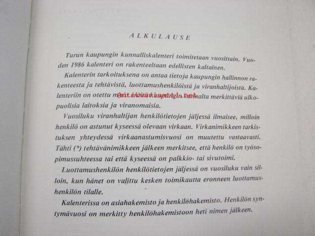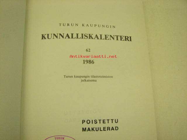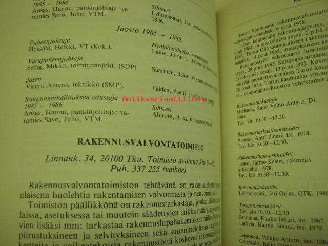 Turun kaupungin tilastotoimisto, 198615 x 21 cm kirja.