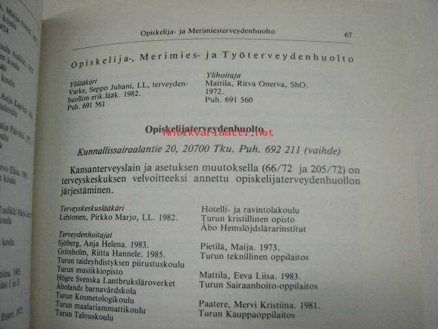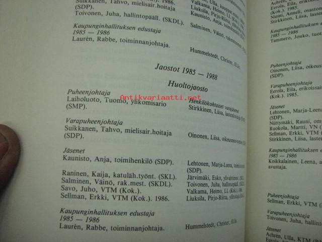 | Saatavilla | 1 kpl | | Julkaisuvuosi | 1986 | | Sivuja | 318 | | Painos | 1. | | Kunto | K3 | | Poistoleimat | | Sidonta/painoasu | Nidottu (pehmeäk.) | | ISBN | 0357-0878 | | Kielet | Suomi |