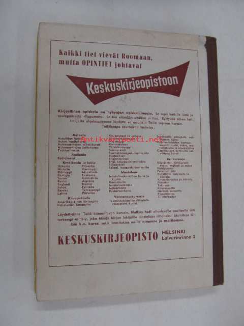 | Saatavilla | 1 kpl | | Julkaisuvuosi | 1952 | | Sivuja | 259 | | Painos | 1. | | Kunto | K3 | | Sidonta/painoasu | Sidottu (kovak.) | | Kielet | Suomi |