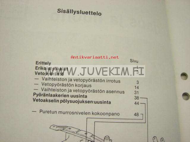 Volvo Huoltokäsikirja osa 4 (46) Korjaus ja huoltoVetopyörästö ja takapyörien laakerointi 340 MT 1979-19.. -korjaamokirjasarjan osa
