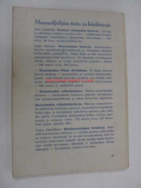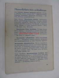 | Saatavilla | 1 kpl | | Julkaisuvuosi | 1951 | | Sivuja | 94 | | Painos | 3. | | Kunto | K3 | | Sidonta/painoasu | Nidottu (pehmeäk.) | | Kielet | Suomi |