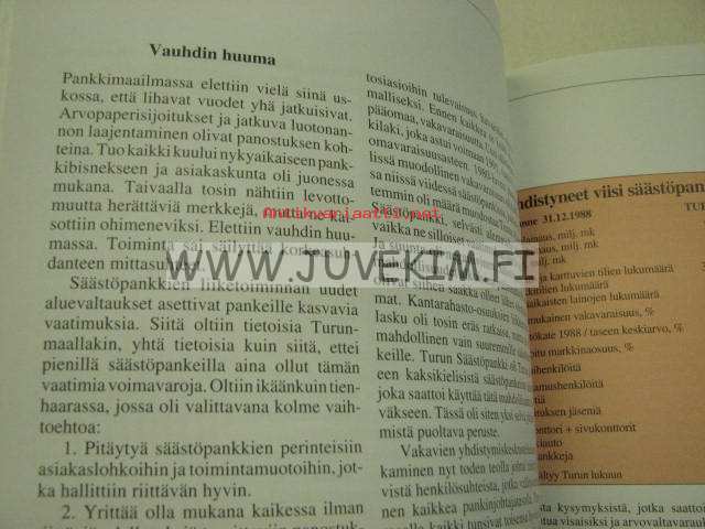 | Saatavilla | 1 kpl | | Julkaisuvuosi | 1994 | | Sivuja | 127 | | Painos | 1. | | Kunto | K2 | | Hintalapputarra takakannessa | | Sidonta/painoasu | Nidottu (pehmeäk.) | | ISBN | 952-90-5060-7 | | Kielet | Suomi |