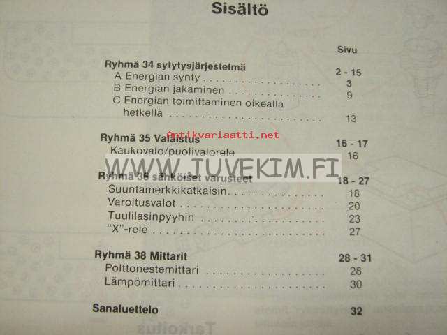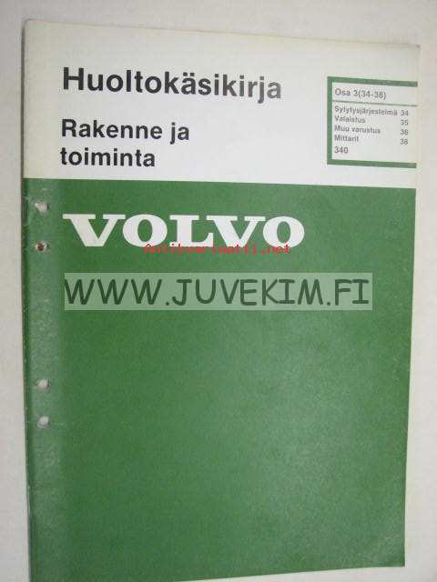 Volvo Huoltokäsikirja Rakenne ja toiminta Osa 3 (34-38) Sytysjärjestelmä, Valaistus, Muuvarustus, Mittarit 340 -korjaamokirjasarjan osa