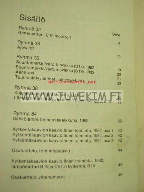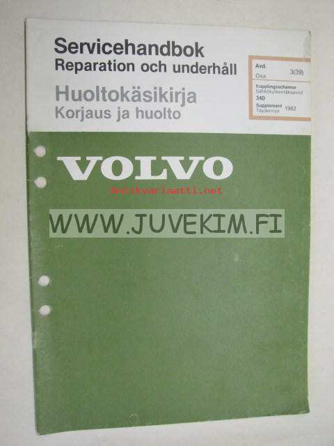 Volvo Huoltokäsikirja Vianetsintä Osa 3 (39) Sähkökytkentäkaaviot 340 täydennys 1982 -korjaamokirjasarjan osa