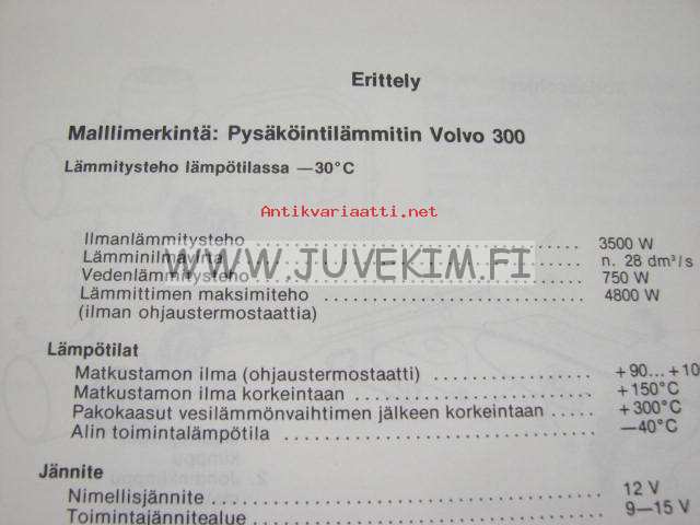 Volvo Huoltokäsikirja Korjaus ja huolto Osa 9 (92) Pysäköintilämmitin Volvo 300 -korjaamokirjasarjan osa