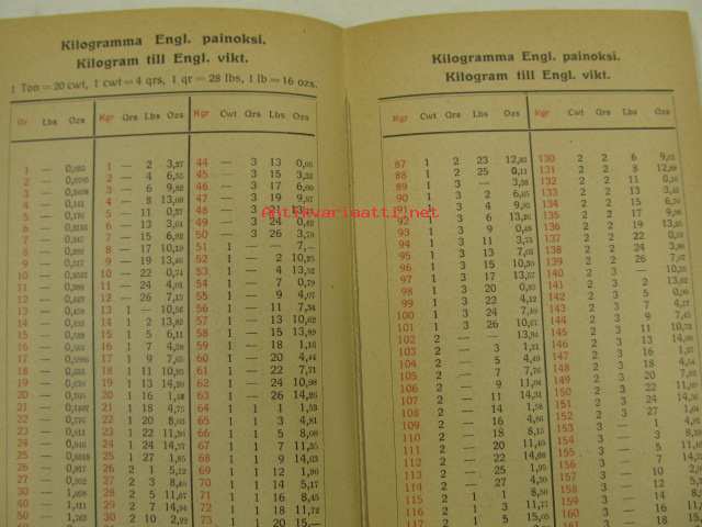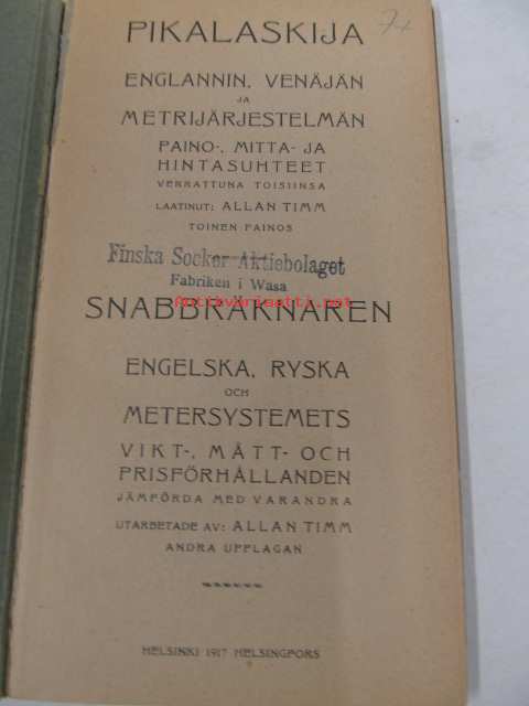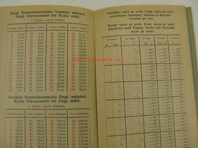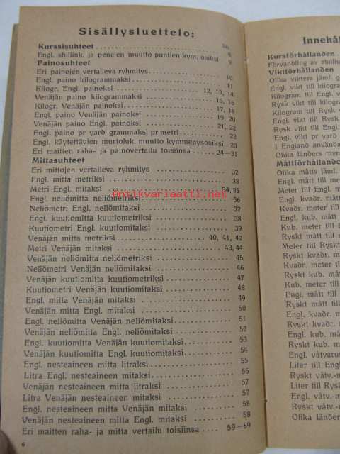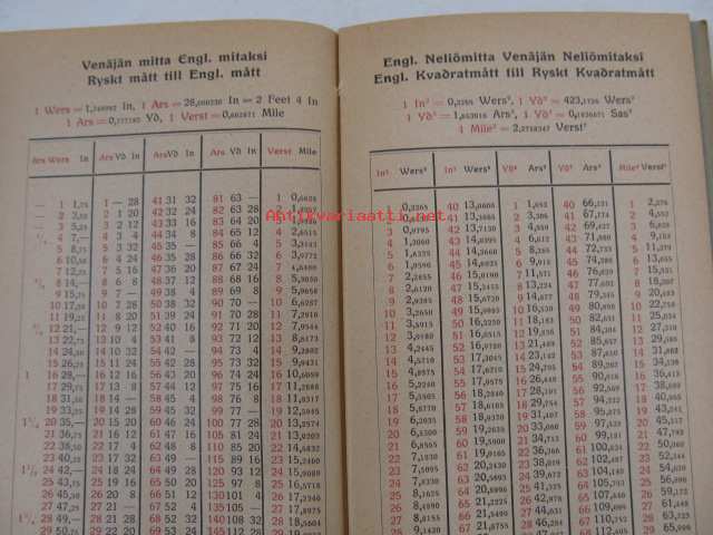 Pikalaskija / Snabbräknaren -Englannin, Venäjän ja metrijärjestelmän paino-, mitta- ja hintasuhteet toisiinsa verrattuna