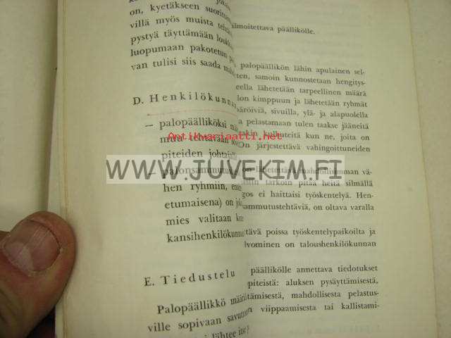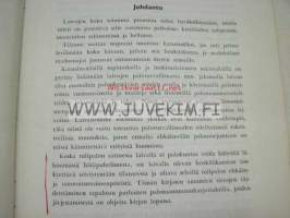 | Saatavilla | 1 kpl | | Julkaisuvuosi | 1962 | | Sivuja | 36 | | Painos | 2. | | Kunto | K2 | | Kulunut | | Sidonta/painoasu | Nidottu (pehmeäk.) | | Kielet | Suomi |