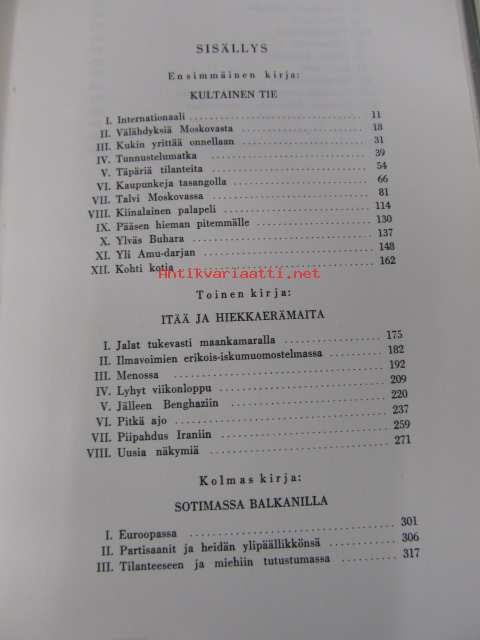 | Saatavilla | 1 kpl | | Julkaisuvuosi | 1957 | | Sivuja | 540 | | Painos | 1. | | Kunto | K3 | | Sidonta/painoasu | Sidottu (kovak.) | | Kielet | Suomi |