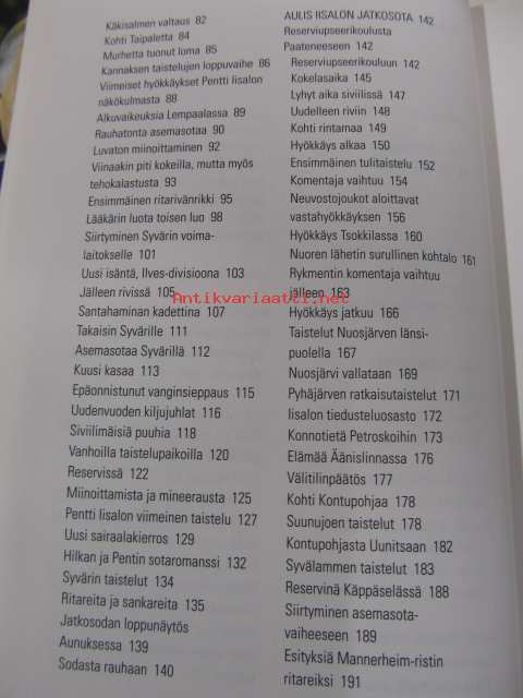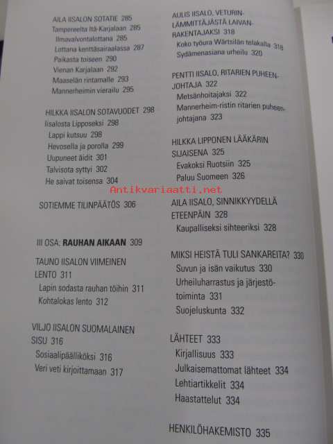 | Saatavilla | 1 kpl | | Julkaisuvuosi | 2005 | | Sivuja | 339 | | Painos | 1. | | Kunto | K3 | | Sidonta/painoasu | Sidottu (kansipaperit) | | ISBN | 951-1-20025-9 | | Kielet | Suomi |