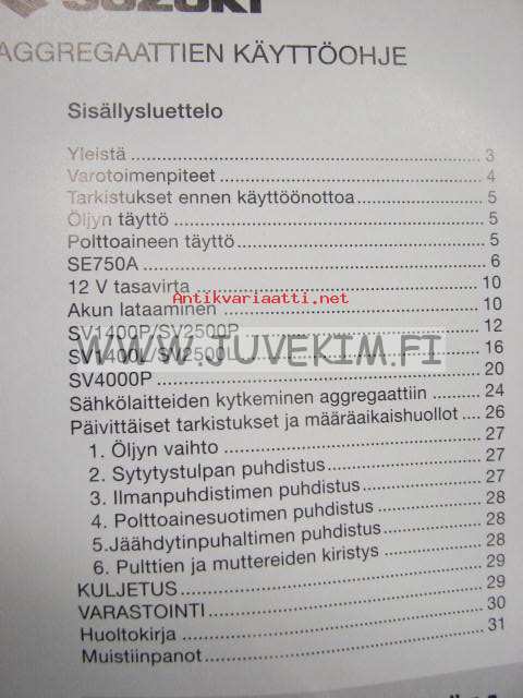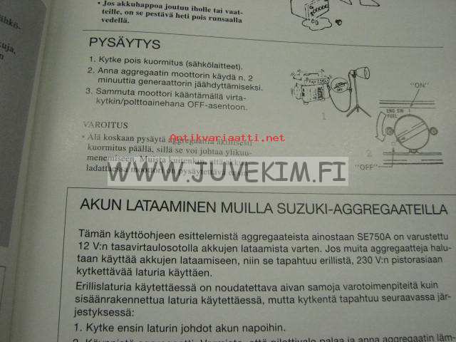 Suzuki Aggregaatit SE750A, SV1400P/SV2500P, SV1400L/SV2500L, SV4000P -käyttöohje