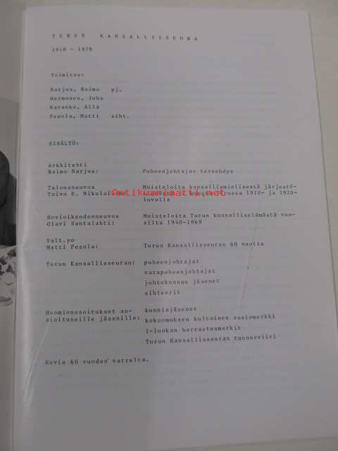 Saatavilla 1 kpl Julkaisuvuosi 1979 Sivuja 30 Painos 1. Kunto K3 Sidonta/painoasu Nidottu (pehmeäk.) Kielet Suomi