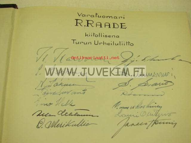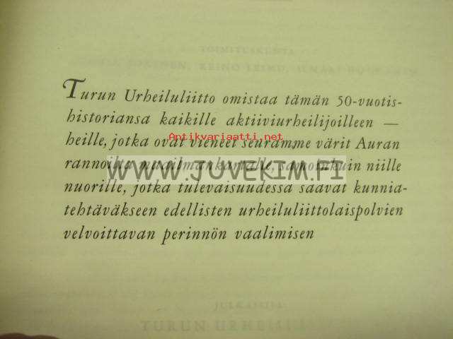 Auran rannoilta maailmankartalle Turun Urheiluliiton vaiheet 1901-1951, numeroitu 95 / 202, omistettu Raino Raadelle