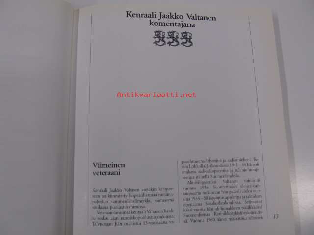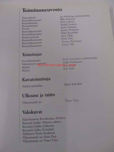 Saatavilla 1 kpl Julkaisuvuosi 1990 Sivuja 186 Painos 1. Kunto K3 Sidonta/painoasu Sidottu (kansipaperit) ISBN 951-25-0482-0 Kielet Suomi