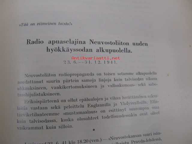 Saatavilla 1 kpl Julkaisuvuosi 1942 Sivuja 200 Painos 1 Kunto K2 Sidonta/painoasu Nidottu (pehmeäk.) Kielet Suomi