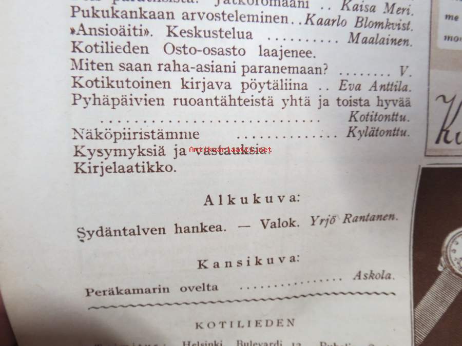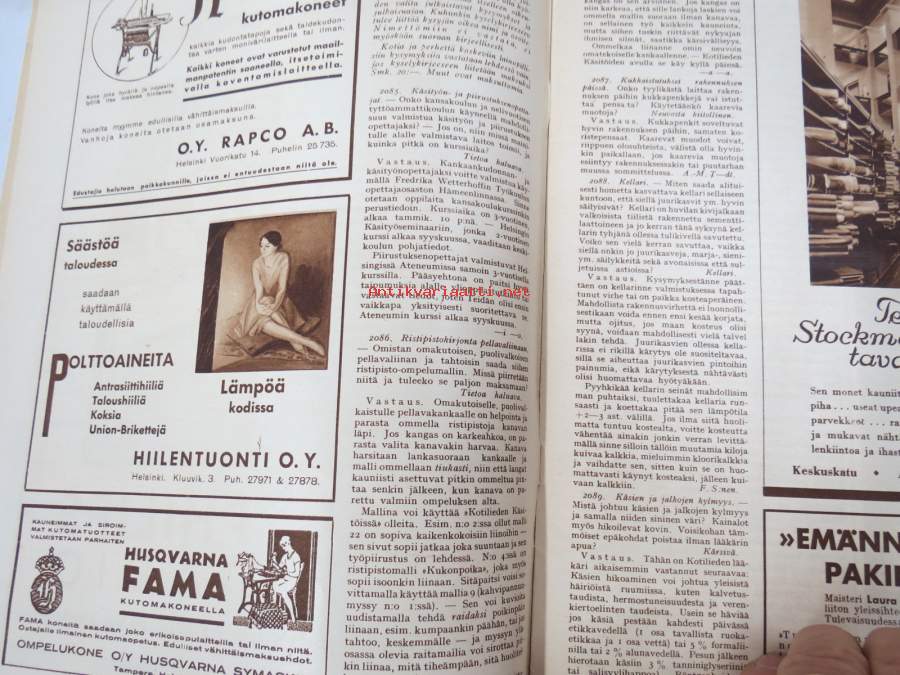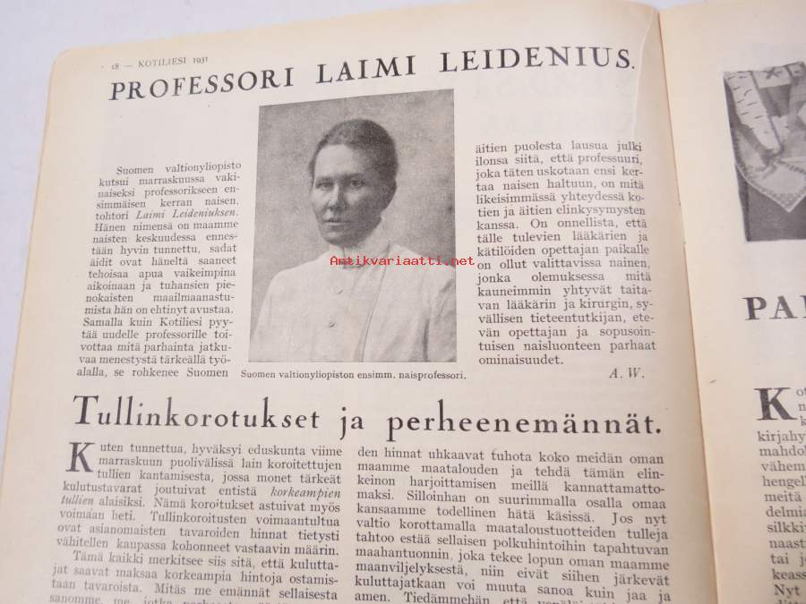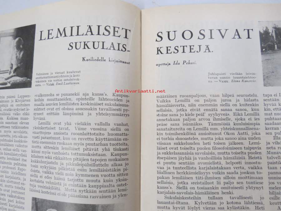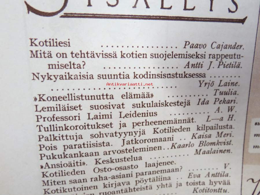 Ford -mainos takakannessa, Suomen ens. valtionyliopiston naisprofessorin Laimi Leidenius nimitetty, Lemin pitäjäläisiä - ollako karjalaisia...vai hämäläisiä, Kahvin historia, Koteja suojattava rappeutumiselta, Pukukankaat, ym.