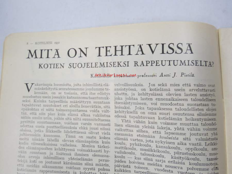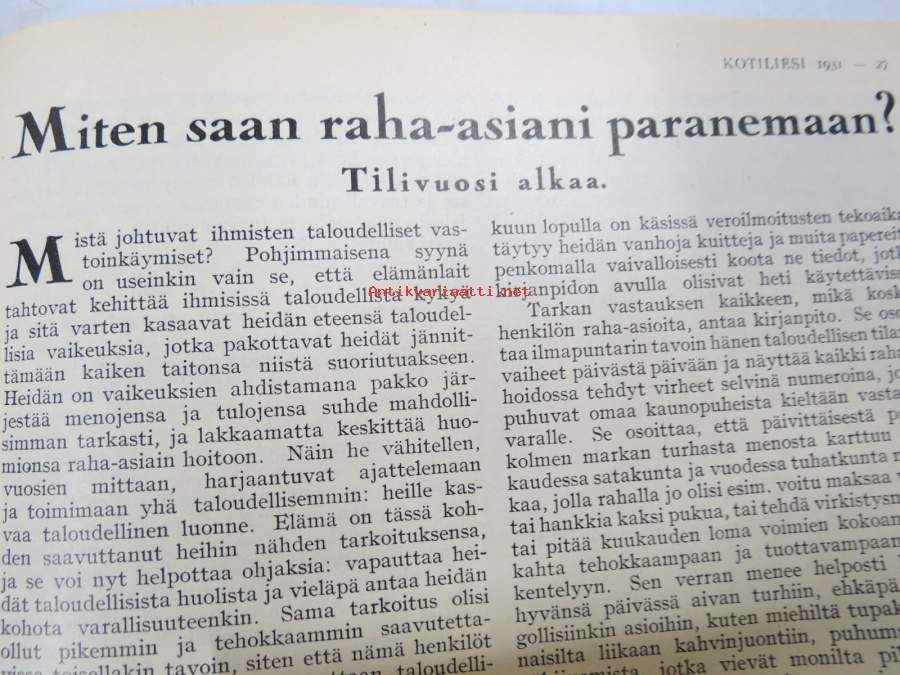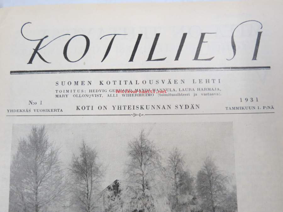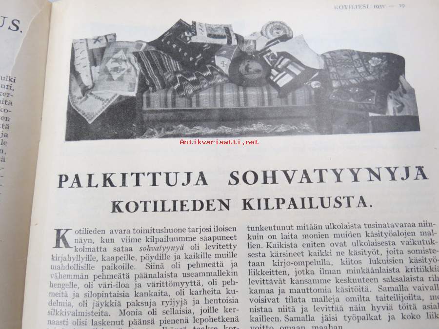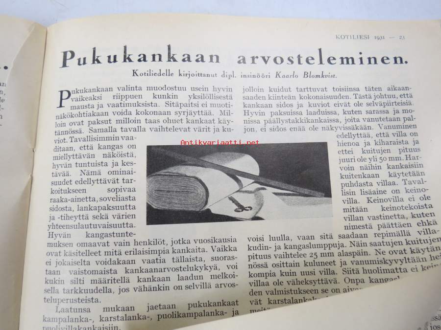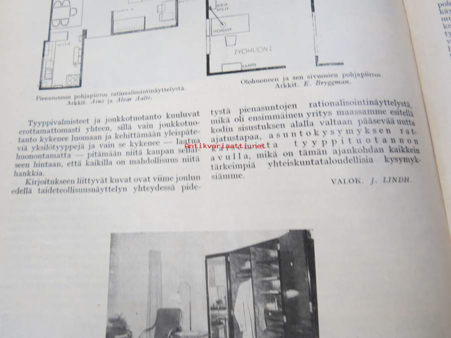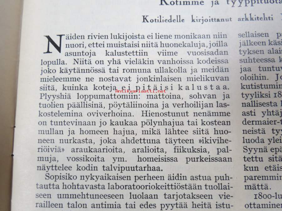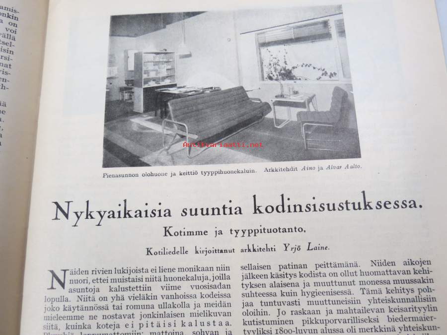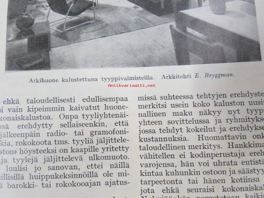 Kotiliesi 1931 nr 1, Nykyaikaa kodinsisustuksessa - arkkitehdit Aino & Alvar Aalto - Erik Bryggman - P. & M Blomstedt - 4-sivuinen artikkeli kalustekuvineen...