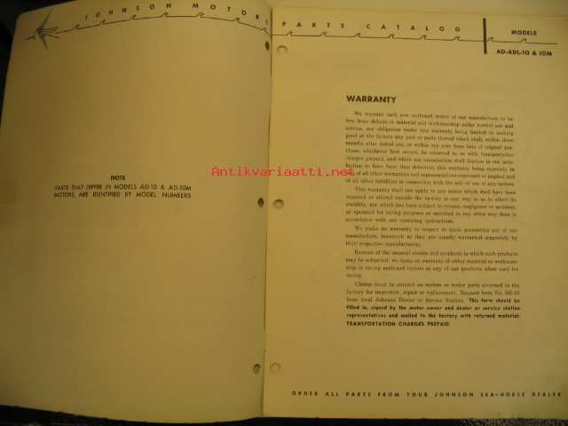 Johnson AD-ADL-10 & 10M 7.5 hp 1956 parts catalog