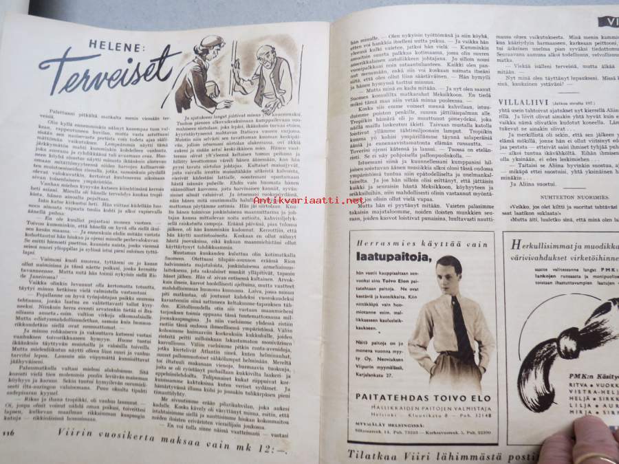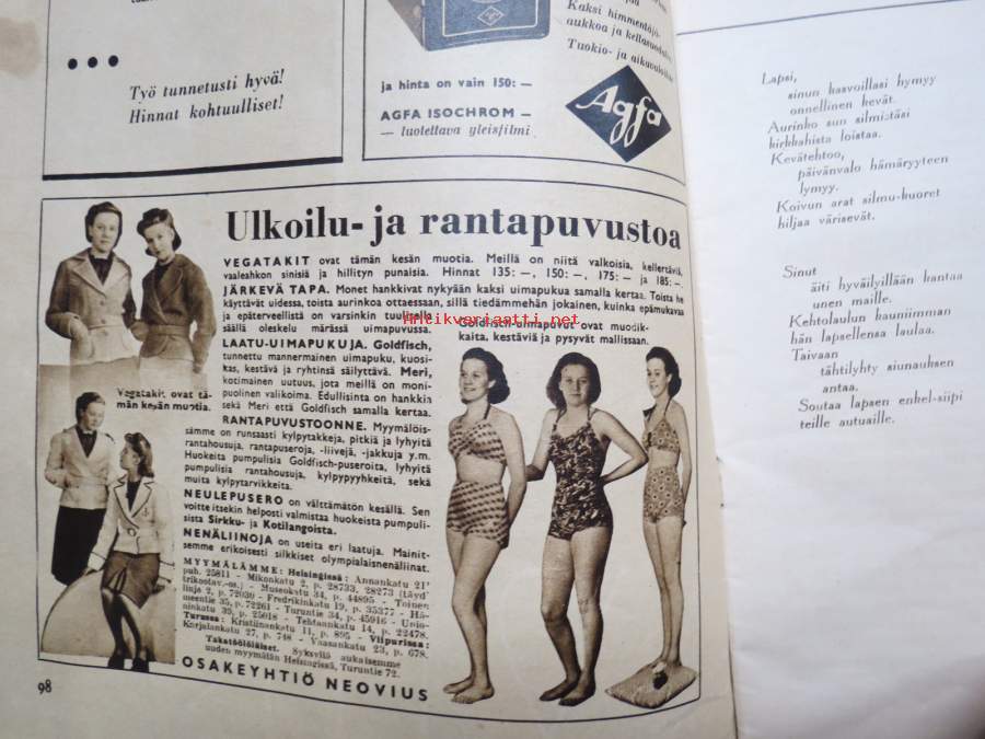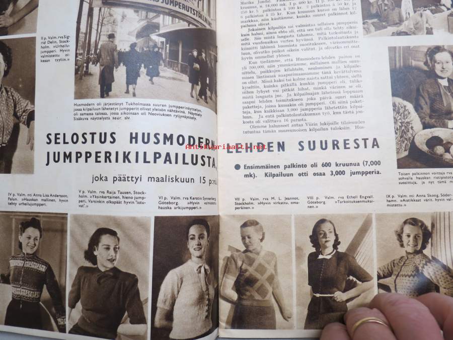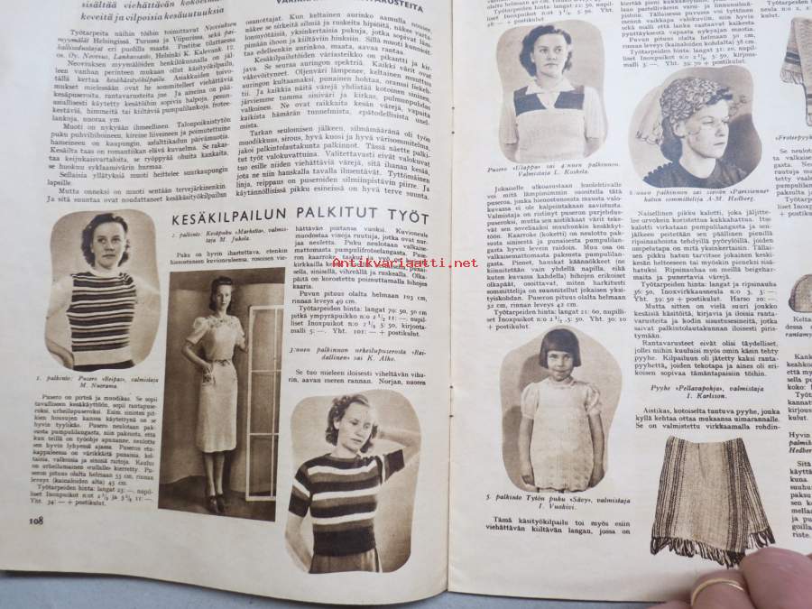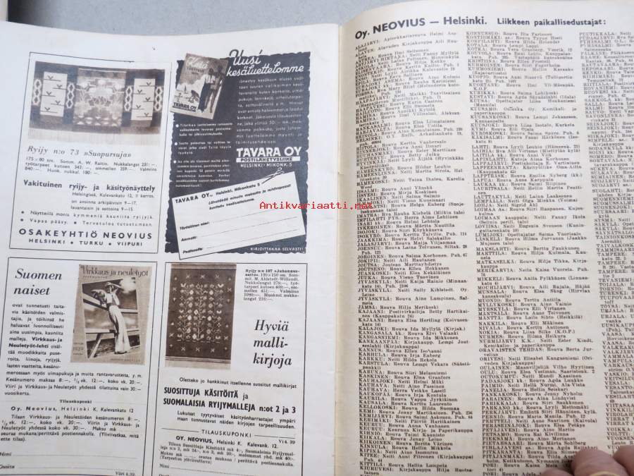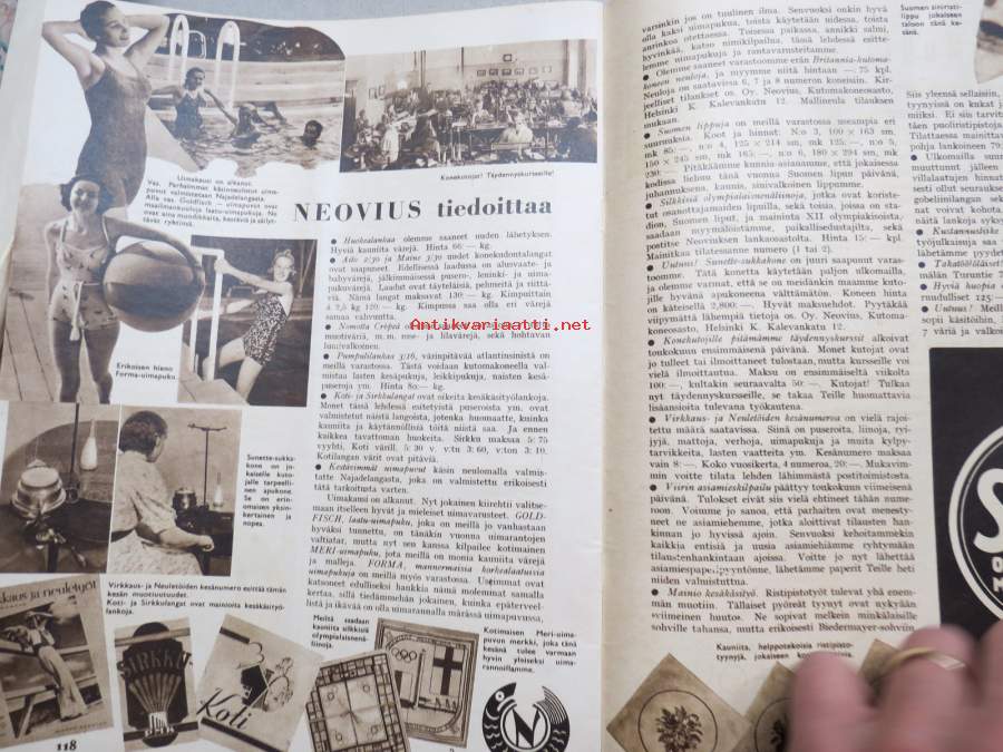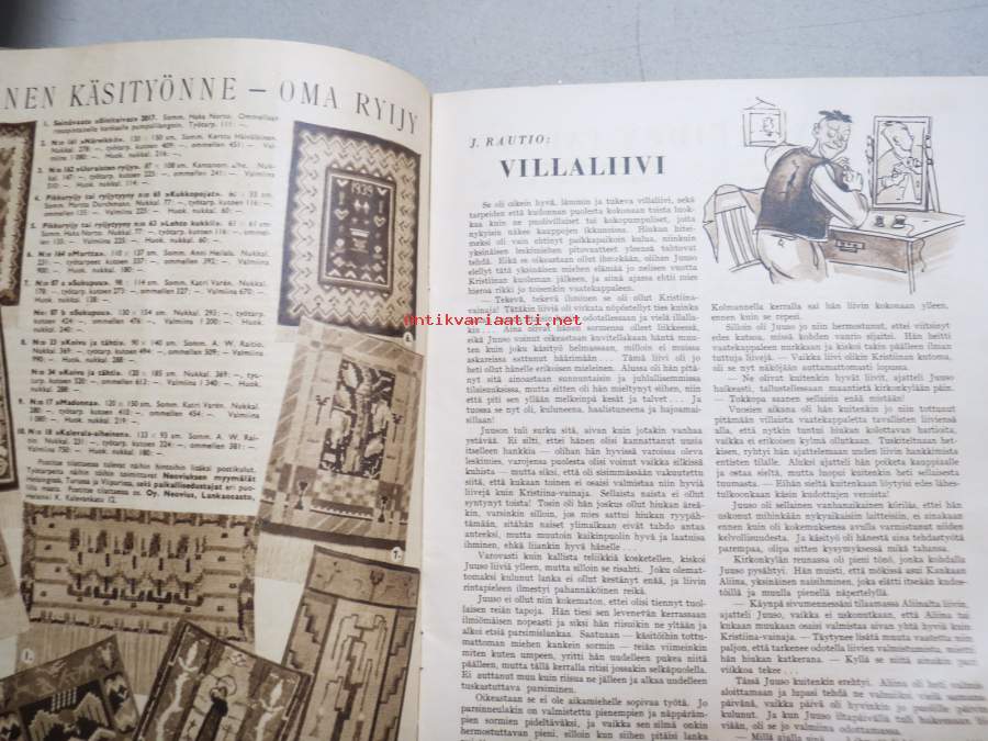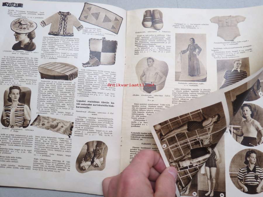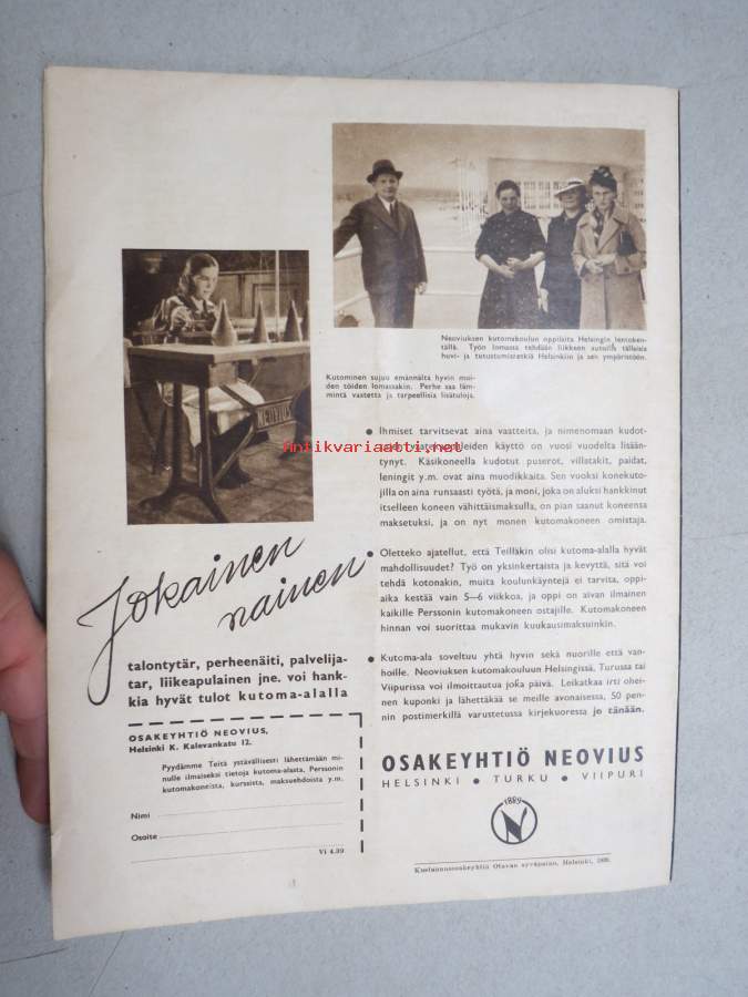 Viiri 1939 nr 4, Neovius Oy asiakaslehti, vaatteita, muotia, kudonnaisia, mm. jumpperikilpailu, ryijyjä ym. käsityöalan asiaa ja mainoksia