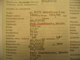 Volvo 131, 142, 144, 145 (Engine B20 A) 1969 Sun Electric Corporation -säätöarvokortti, monikielinen -technical specifications, multilingual