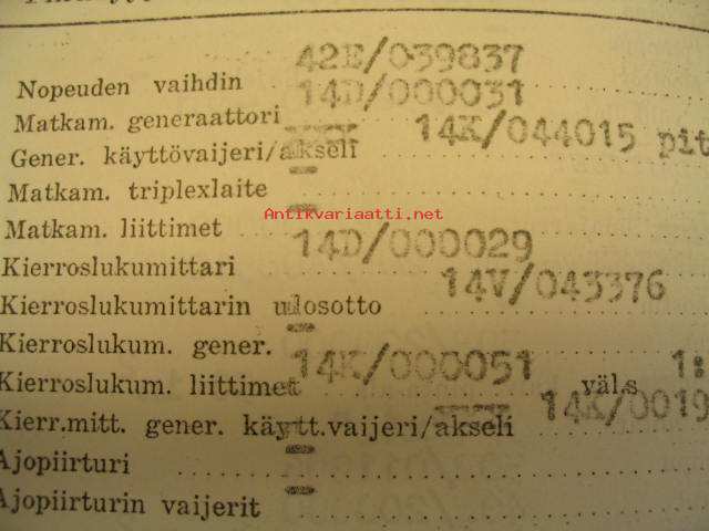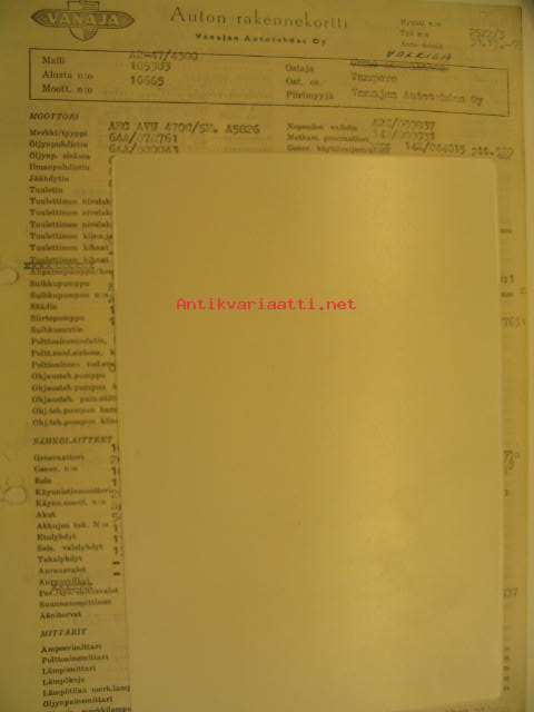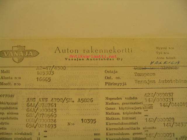 Alusta nro 185503, moottorin nro 16665, toimitettu Valkolalle Tampereelle, Uuno Leppälahti ylivedetty. Kortissa on kaikki tekniset tiedot asennuksista ja osista.