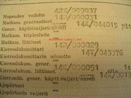 Volvo 1800 S, 135 GT, 133 1969 Sun Electric Corporation -säätöarvokortti, monikielinen -technical specifications, multilingual
