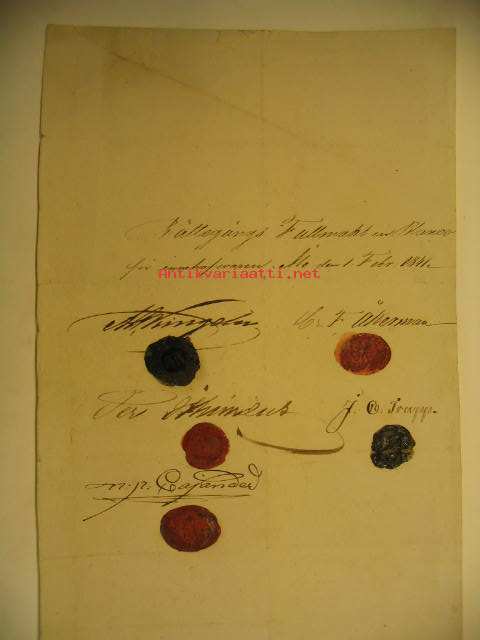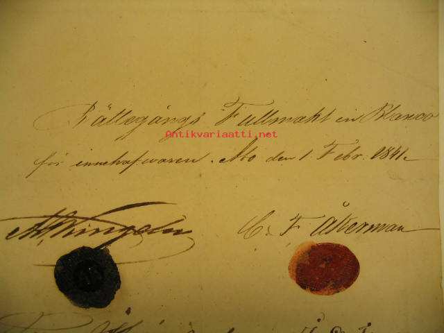 Rättegångs Fullmakt in Blanco i Åbo 1841 Kingelin, Åkerman, Hindrichs, Trapp, Cajander