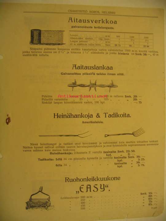 Agros - Aitausverkkoa -mainos v 1909