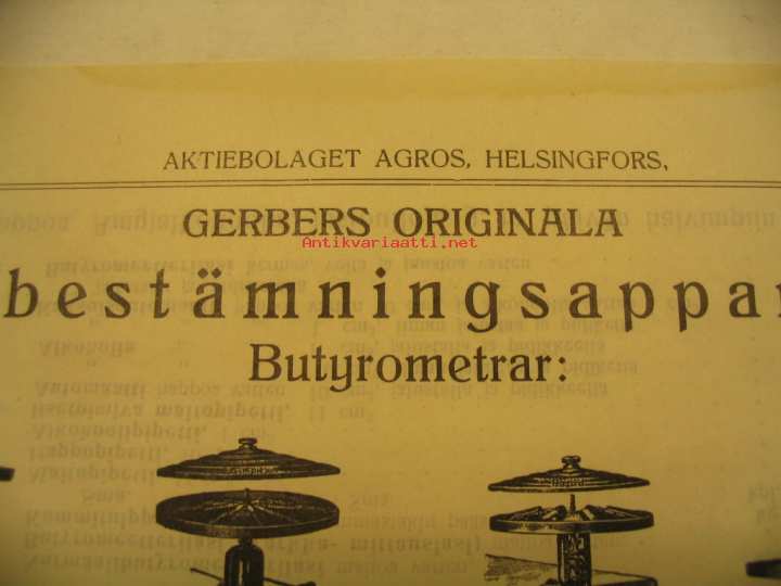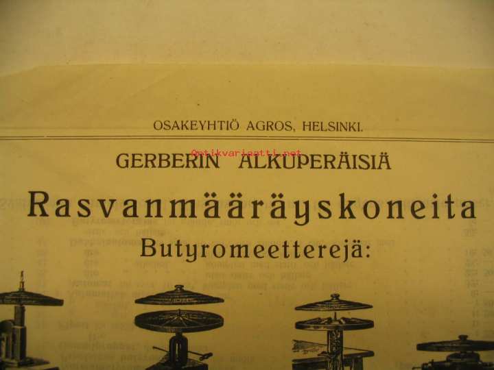 Gerberin rasvanmääräyskoneita Agros myyntiesite v. 1910