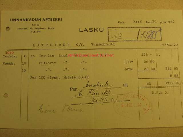Littoinen Oy:n vanhainkodin tilaamat lääkkeet.